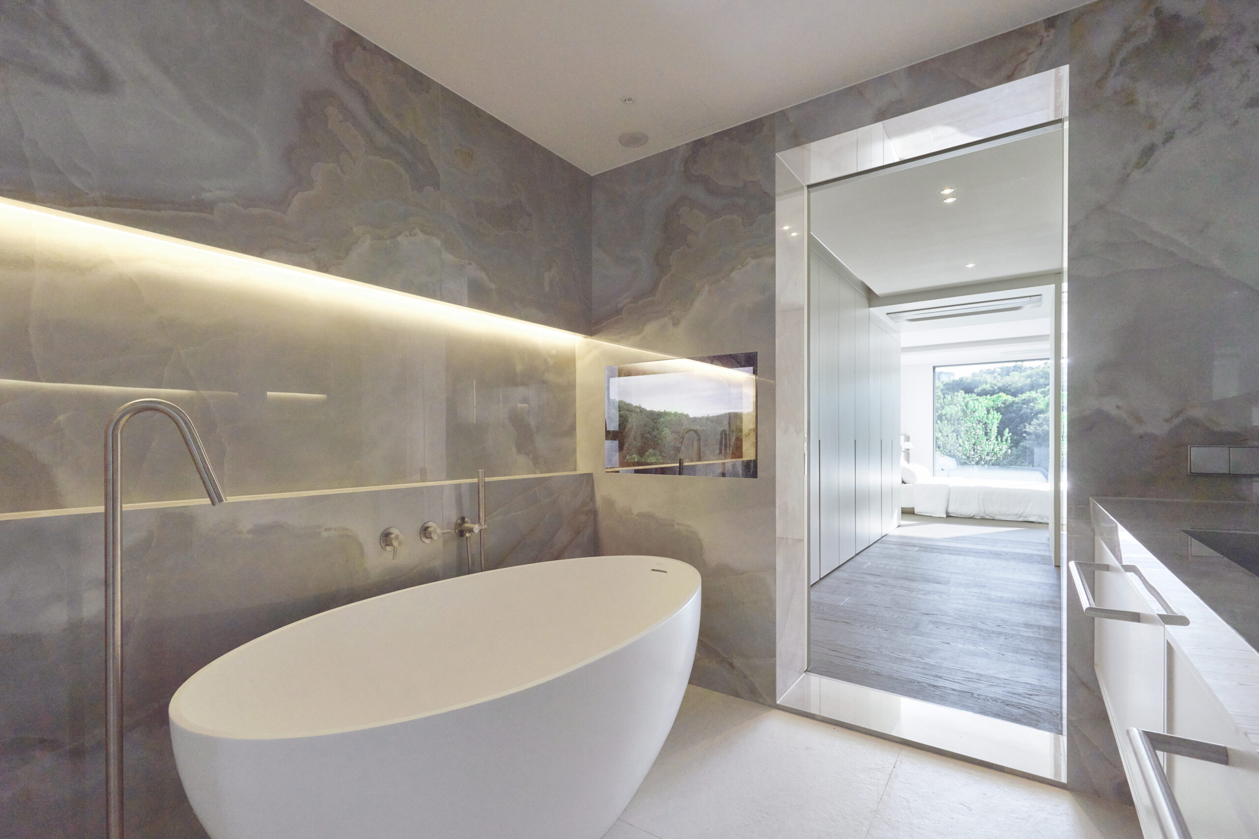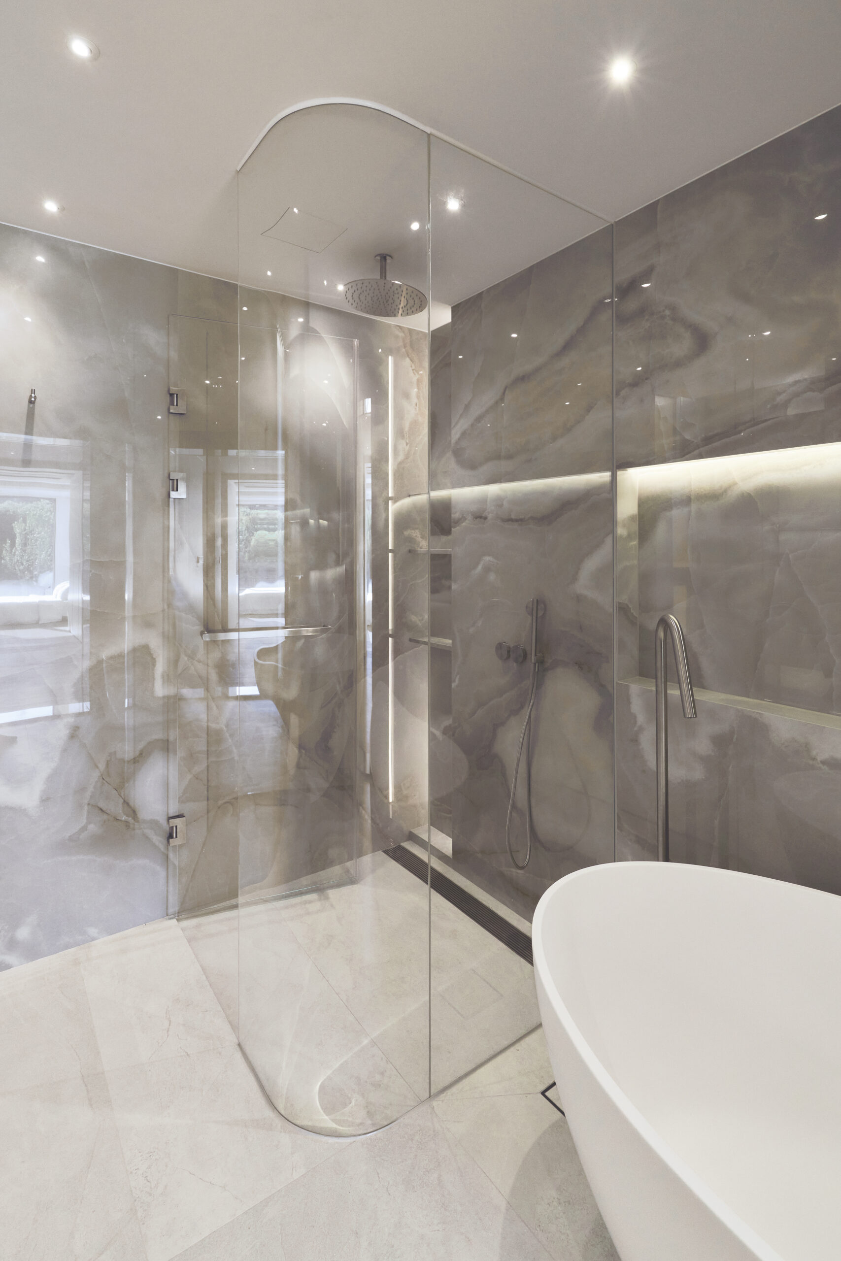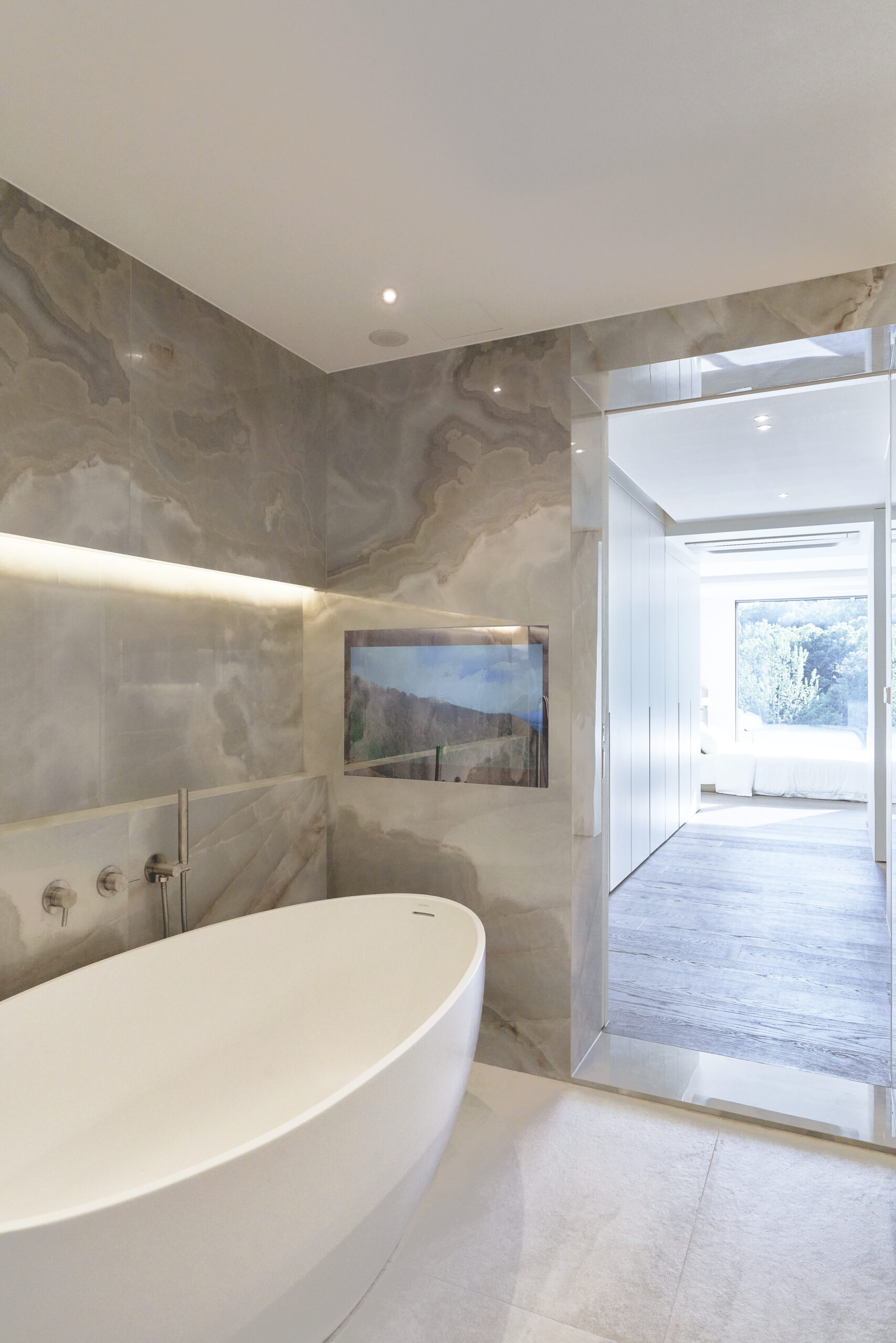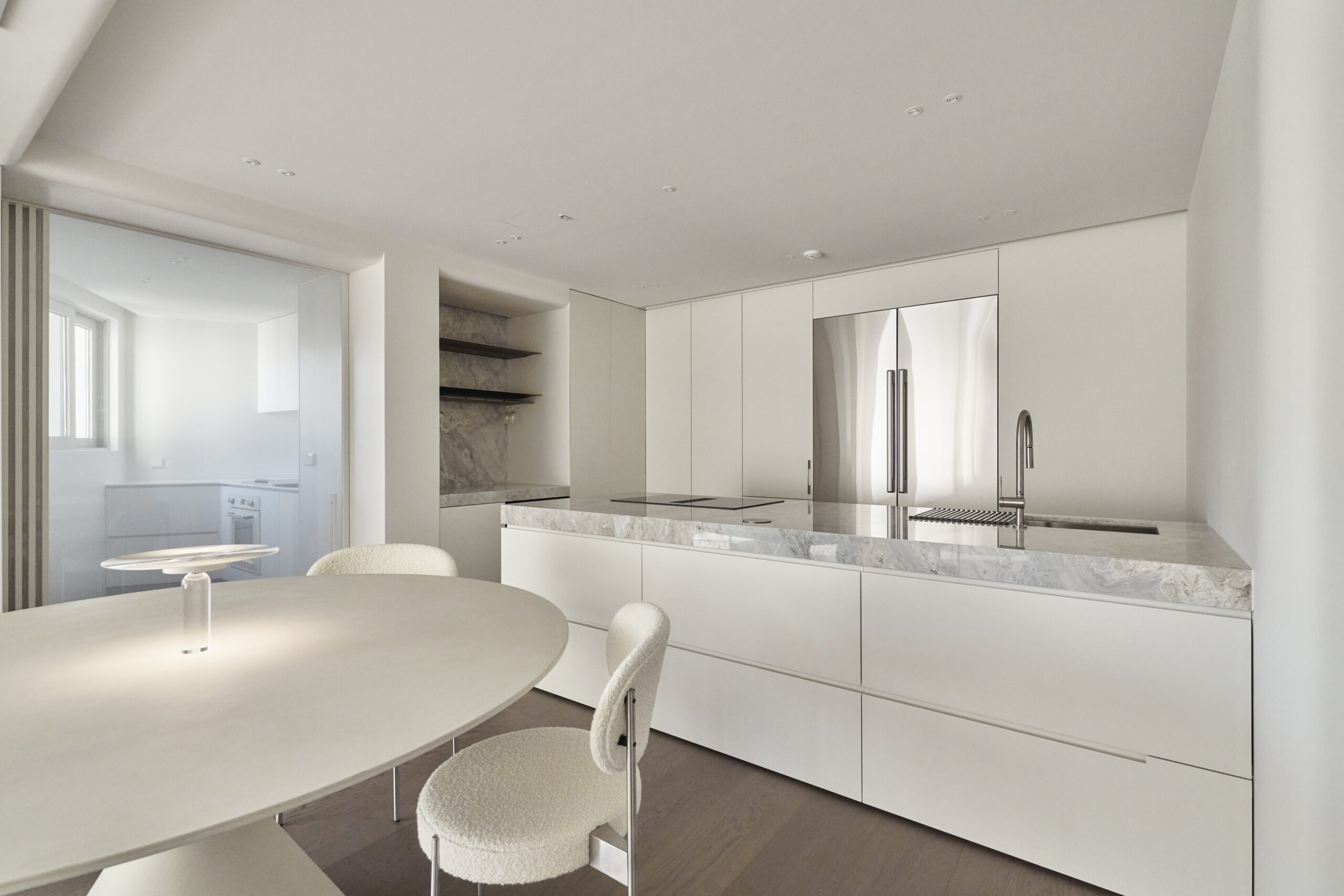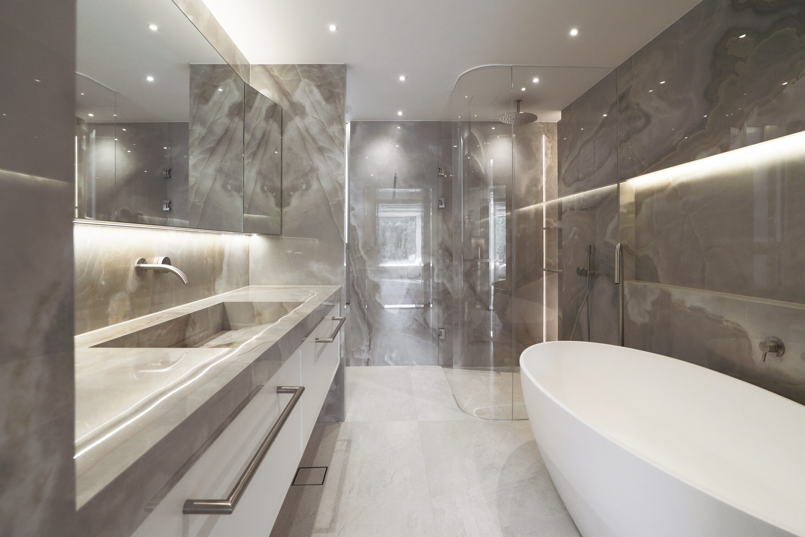 특히 거실과 안방에서 펼처지는 숲뷰와 조화를 이루기 위해 내부에도 무늬목과 원석 같은 천연 소재를 사용했습니다. 고유한 색감이 지닌 깊이를 그대로 살려 소재 자체의 아름다움이 공간 안에서 자연스럽게 존재감을 드러내도록 했습니다.