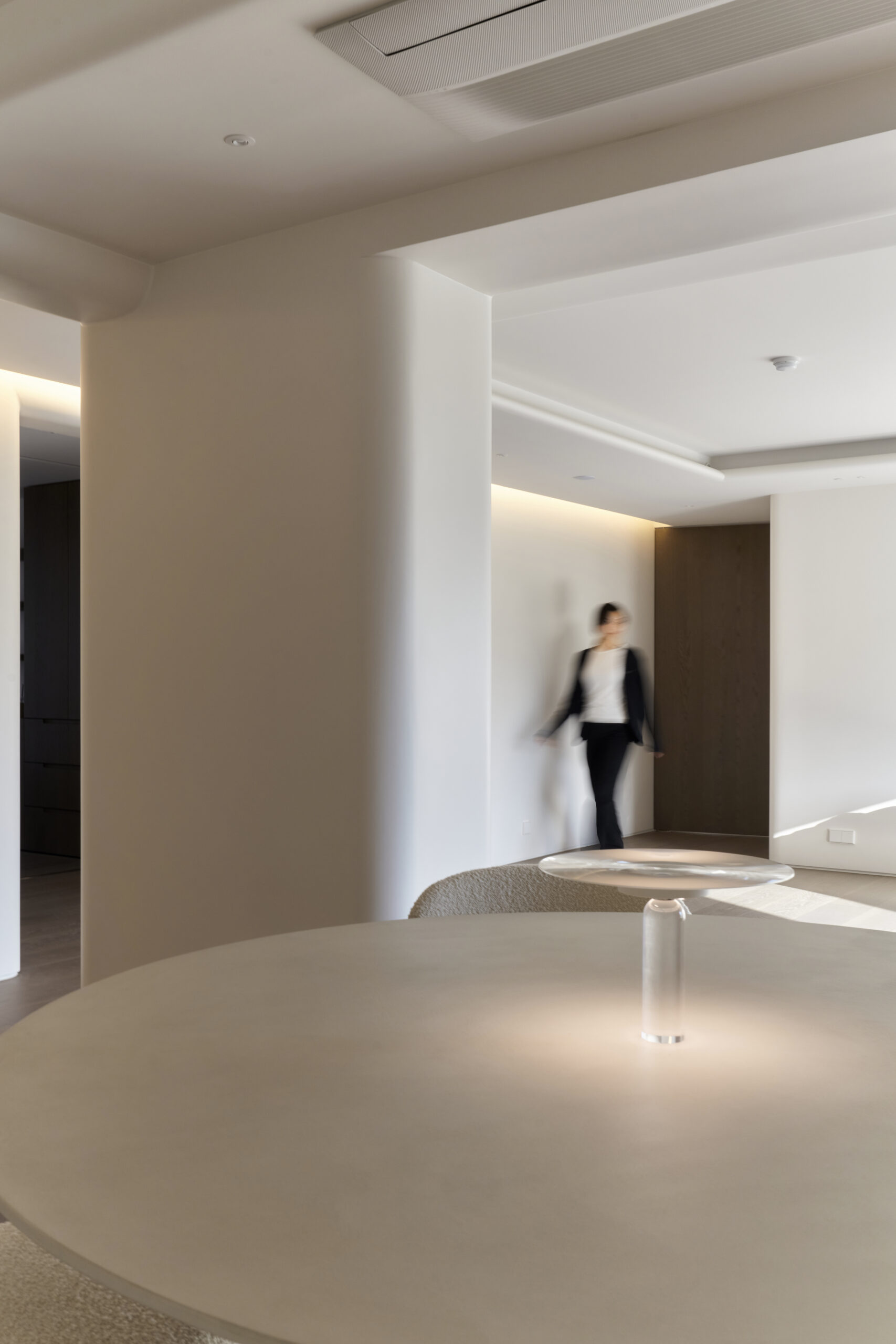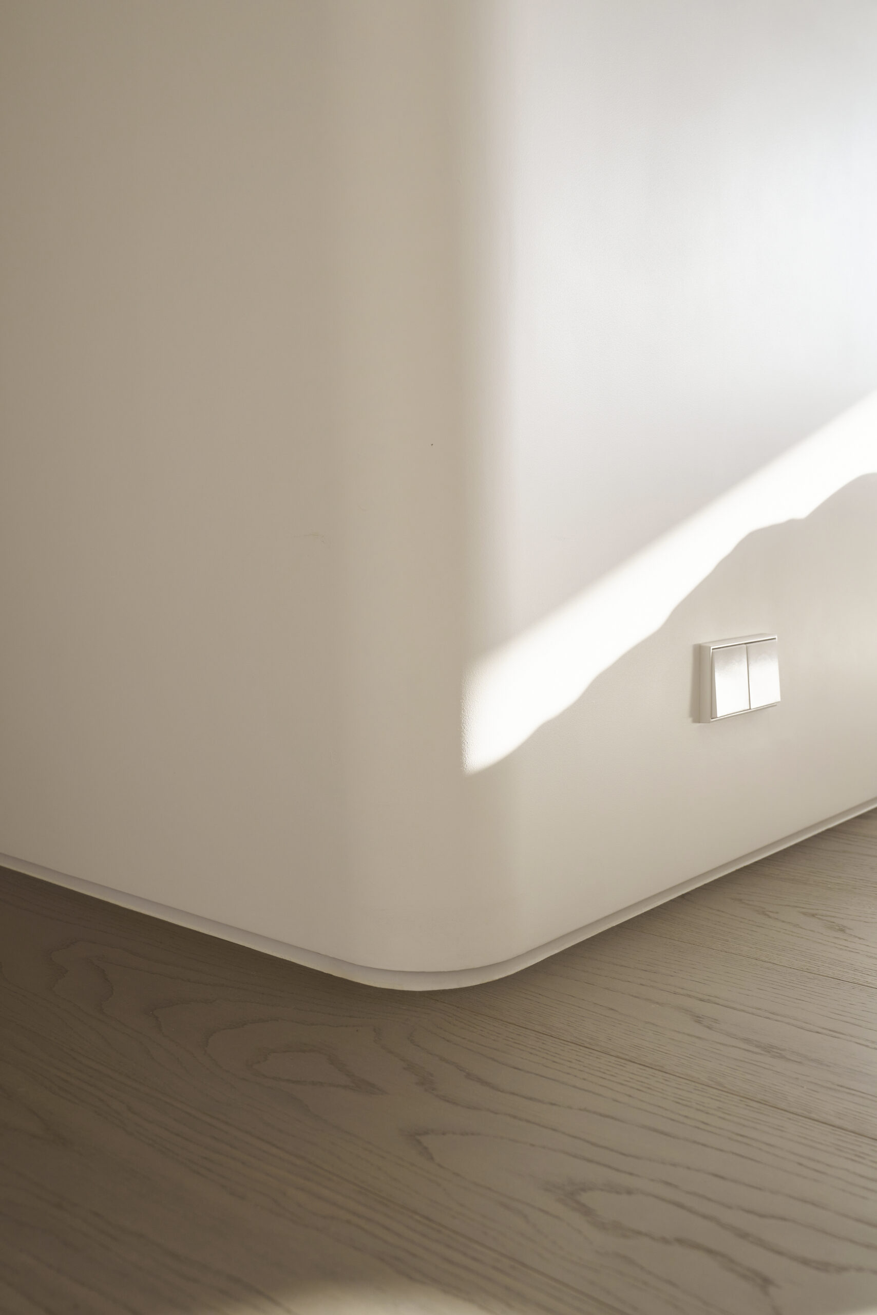 천정에 지나가는 많은 보와 구조 벽들을 곡선과 직선을 적절하게 적용하여 보 외에 천정을 최대한 높이면서도 시선이 부드럽게 흘러 지저분하지 않게 설계하고 곡선을 굵고 얇게 다양하게 배치하여 부드럽지만 단조롭지 않도록 했습니다.