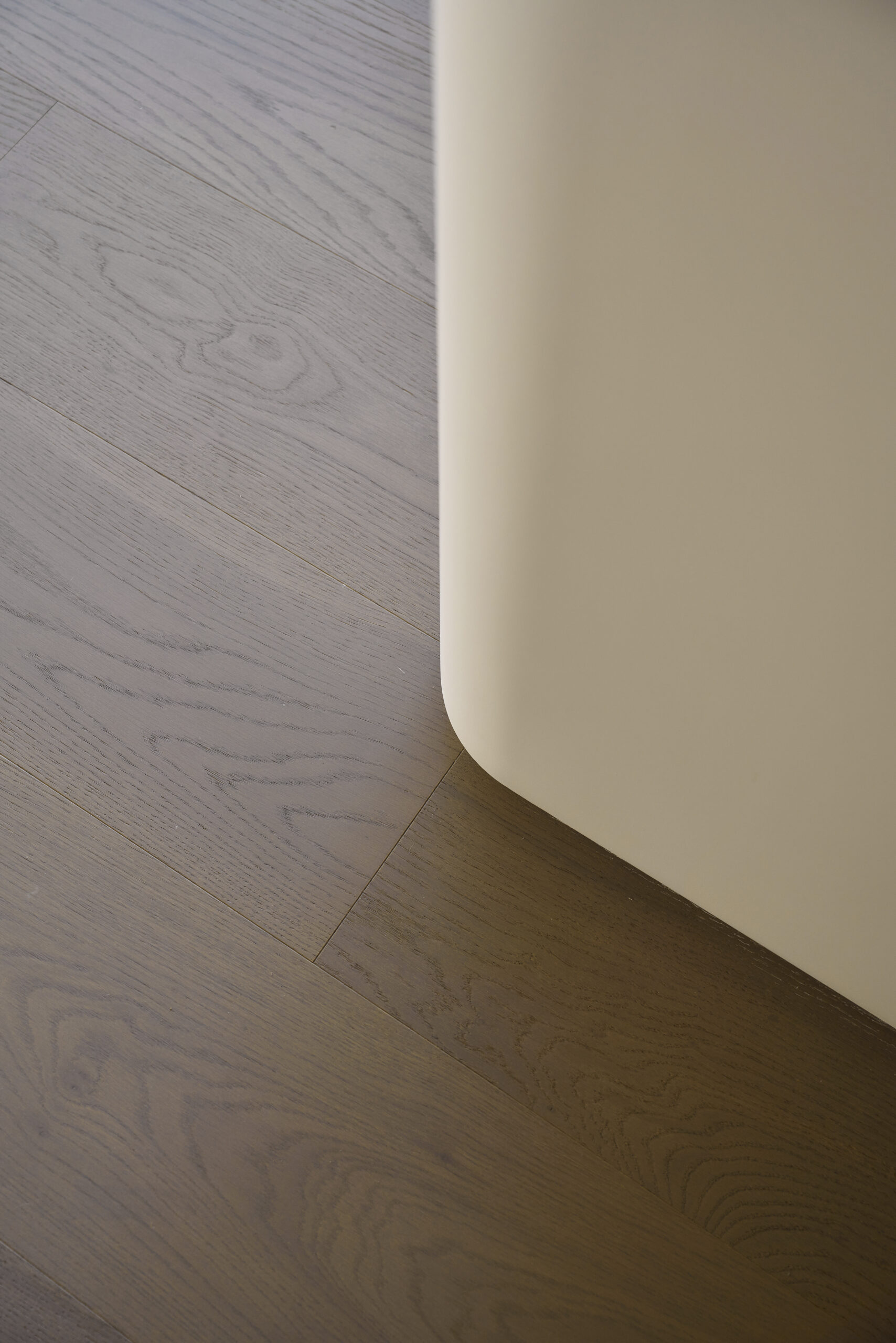 평수가 넉넉하고 구조적으로 돌출된 부분이 많아 바닥재는 차분한 워시월넛 소재로 표현하고 벽과 천정은 텍스처가 부드러운 밴자민무어 수성도장으로 표현했습니다.