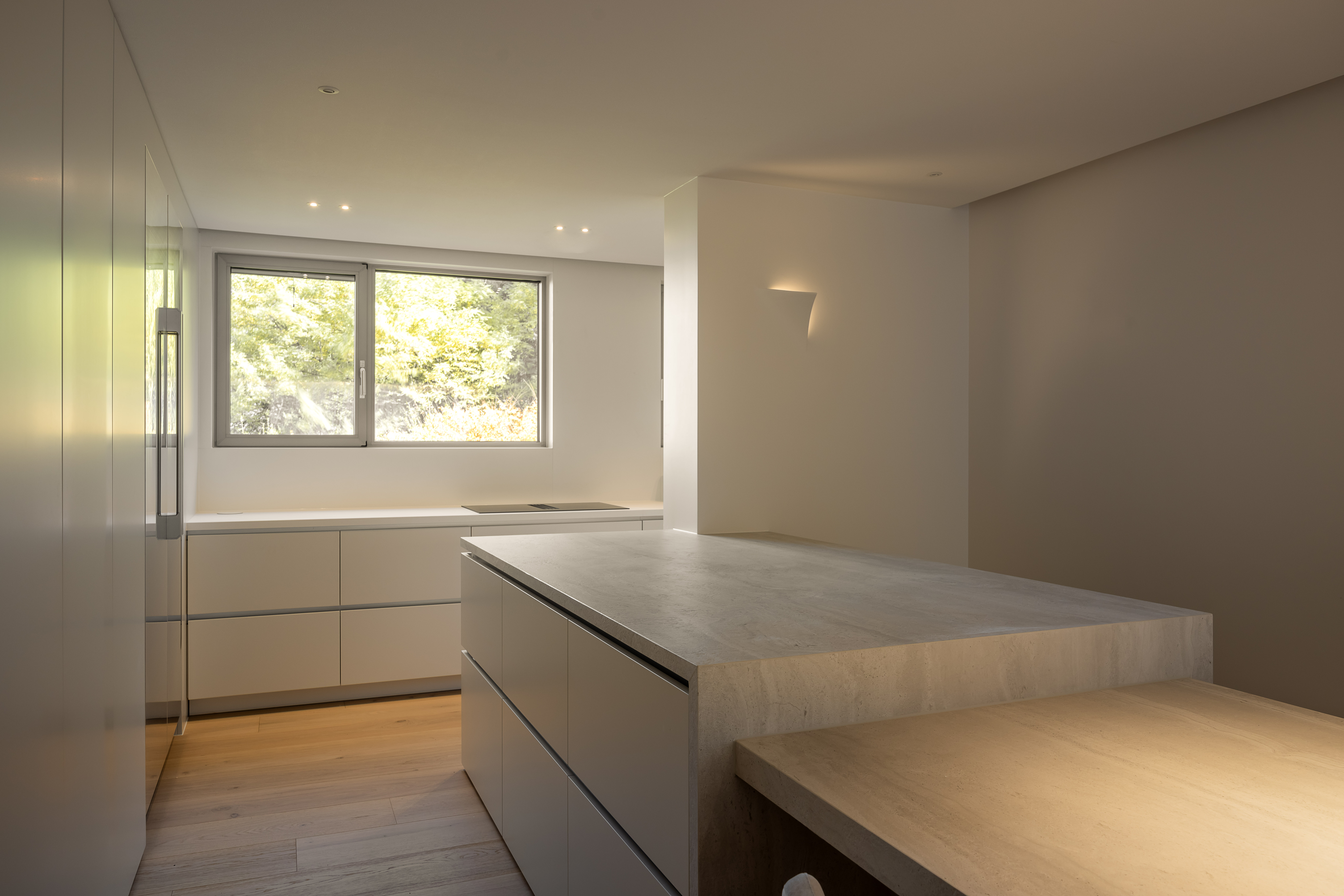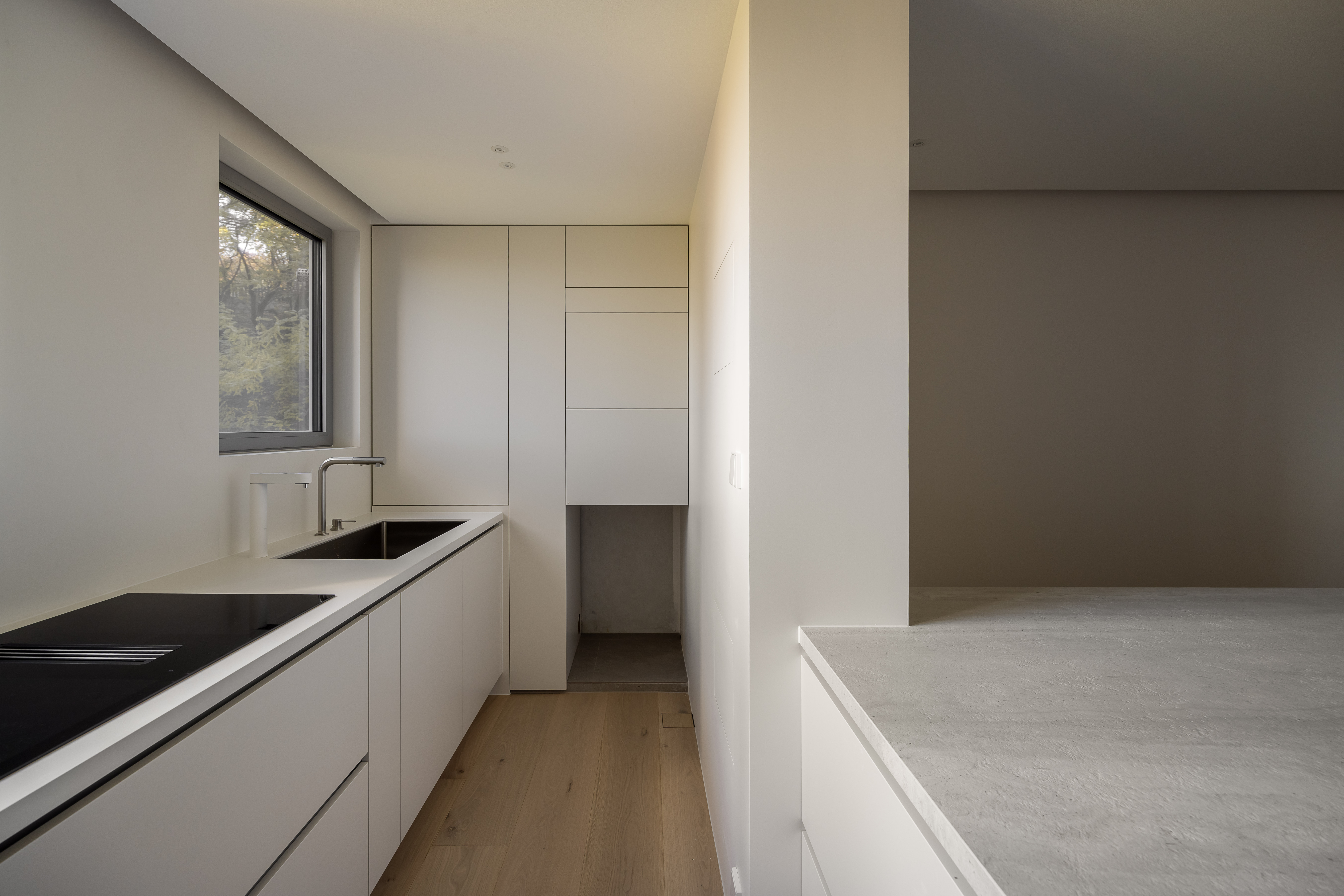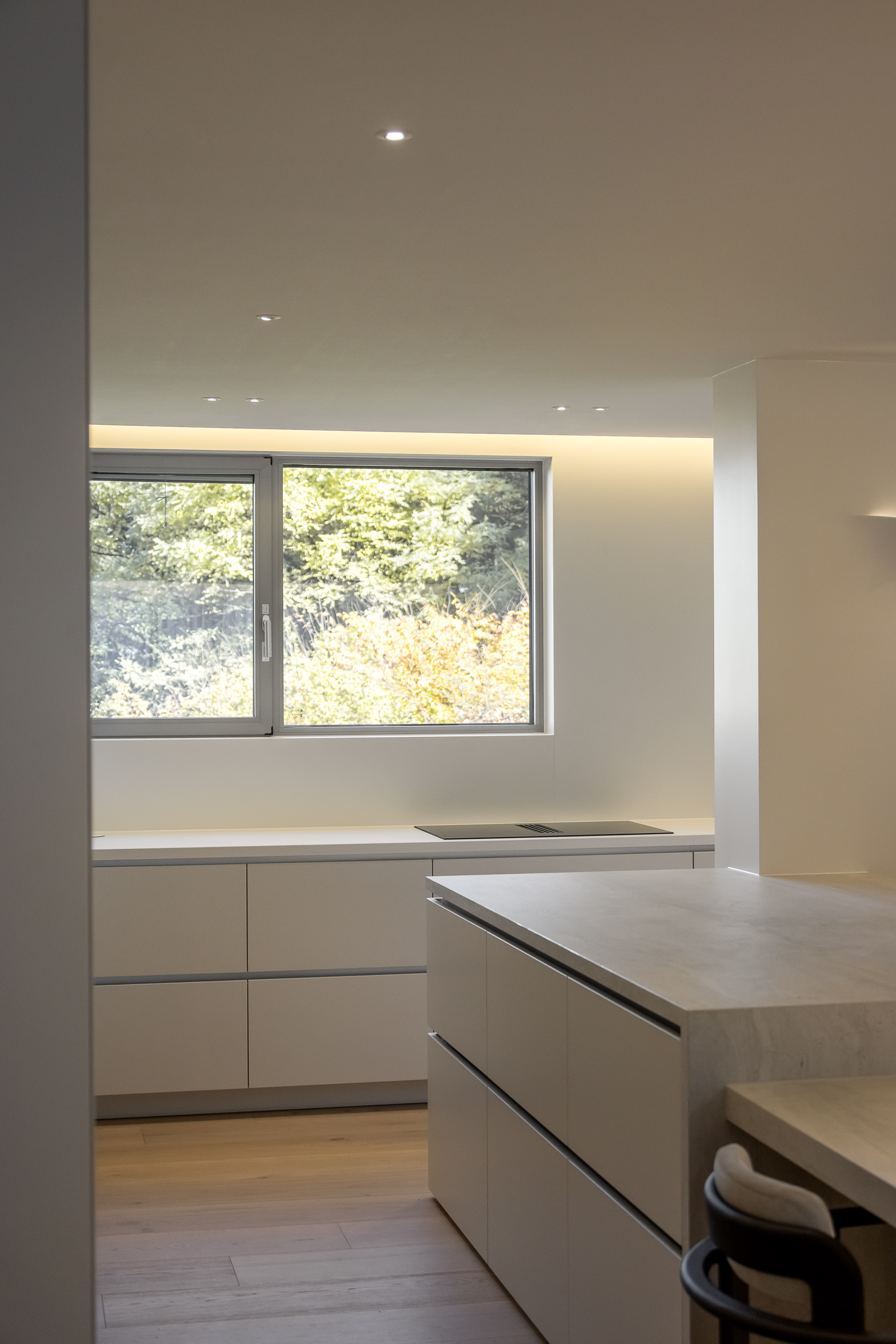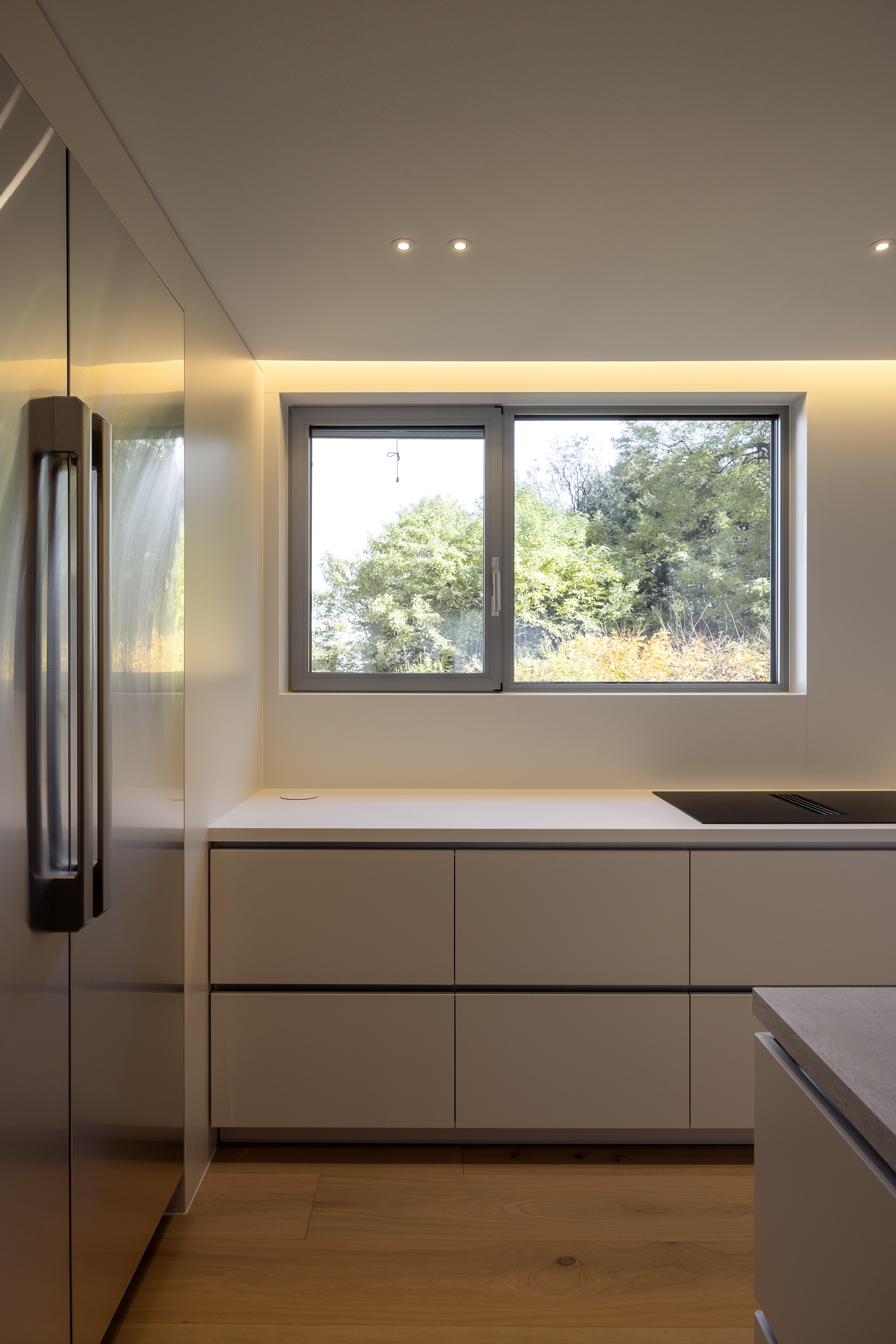 주방은 숲 뷰가 가장 아름답게 보이도록 알루미늄 창호로 교체하여 차경을 그림처럼 담았습니다.